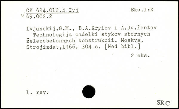 Ivjanskij,G.M., B.A.Krylov i A.Ju.£ontov Technologija zadelki stykov sbornych zelezobetonnych konstrukcii.