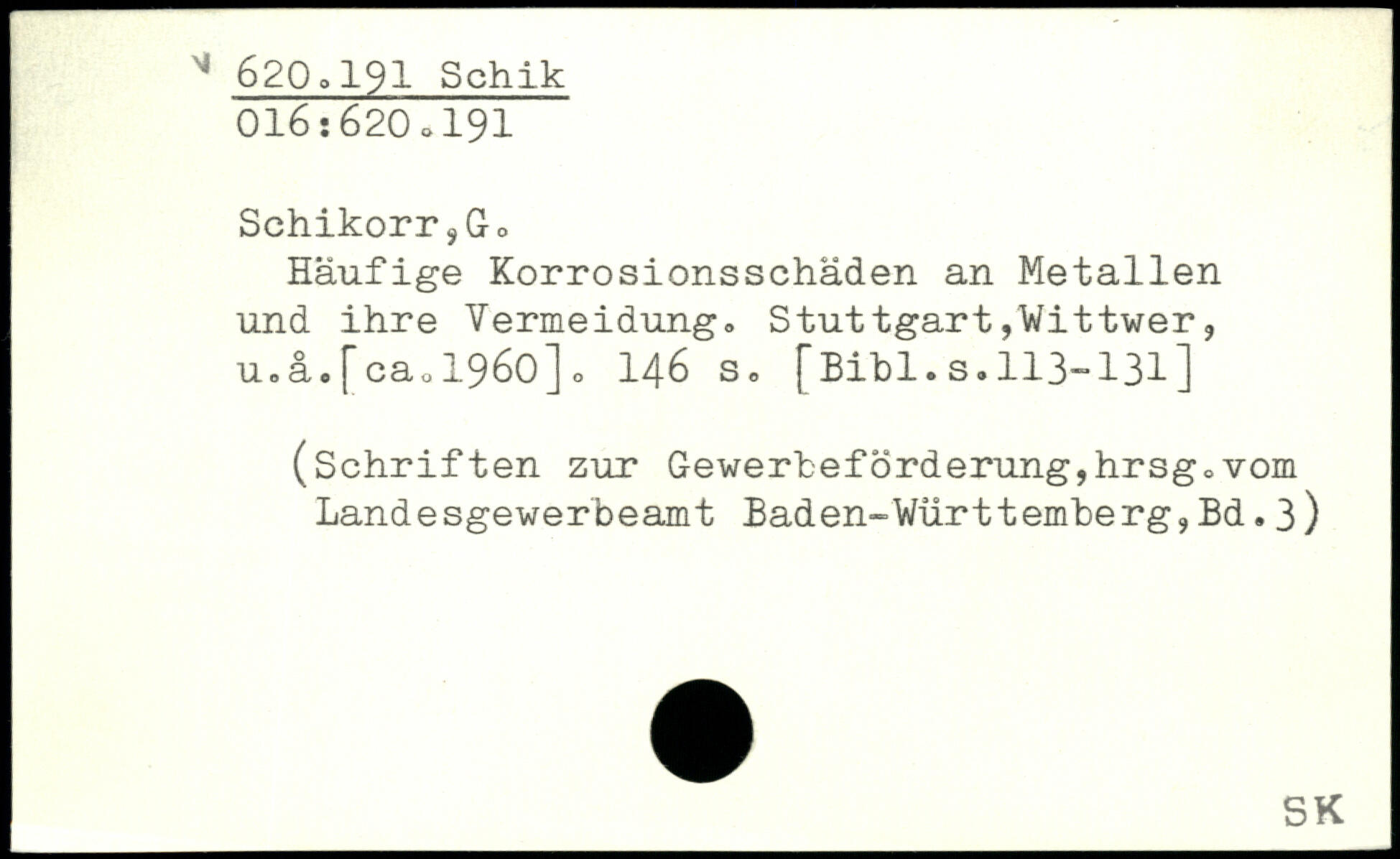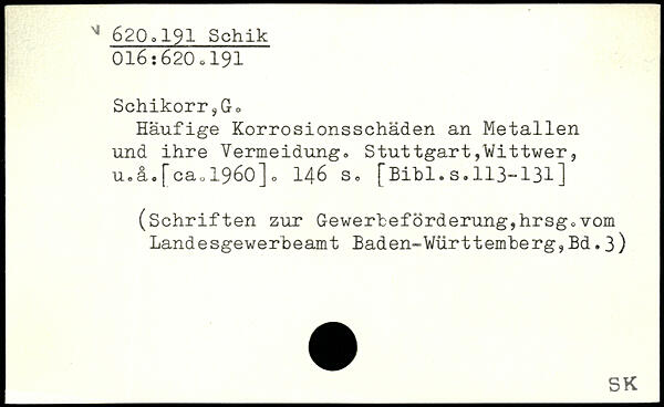 Häufige Korrosionsschäden an Metallen und ihre Vermeidung, Stuttgart,Wittwer, u,ä.[ca.1960]o