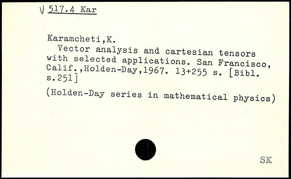 Vector analysis and cartesian tensors r,? fSece^ed aPPlicati.ns. San Francisco, I s 251]’. n"'Day’1967'
