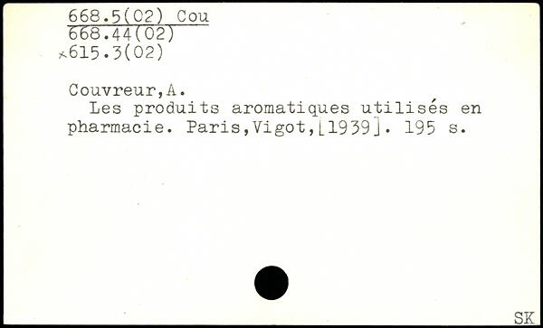 Les produits aromatiques utilisés en pharmacie. Paris ,Vigot, |_ 1939 j.