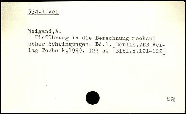 Einführung in die Berechnung mechanischer Schwingungen, Bd.l.
