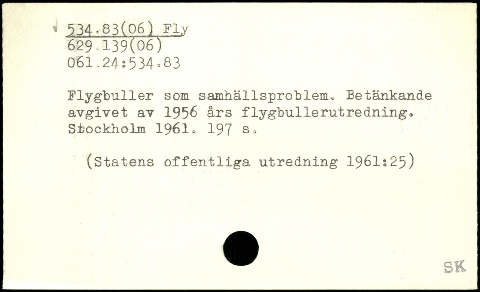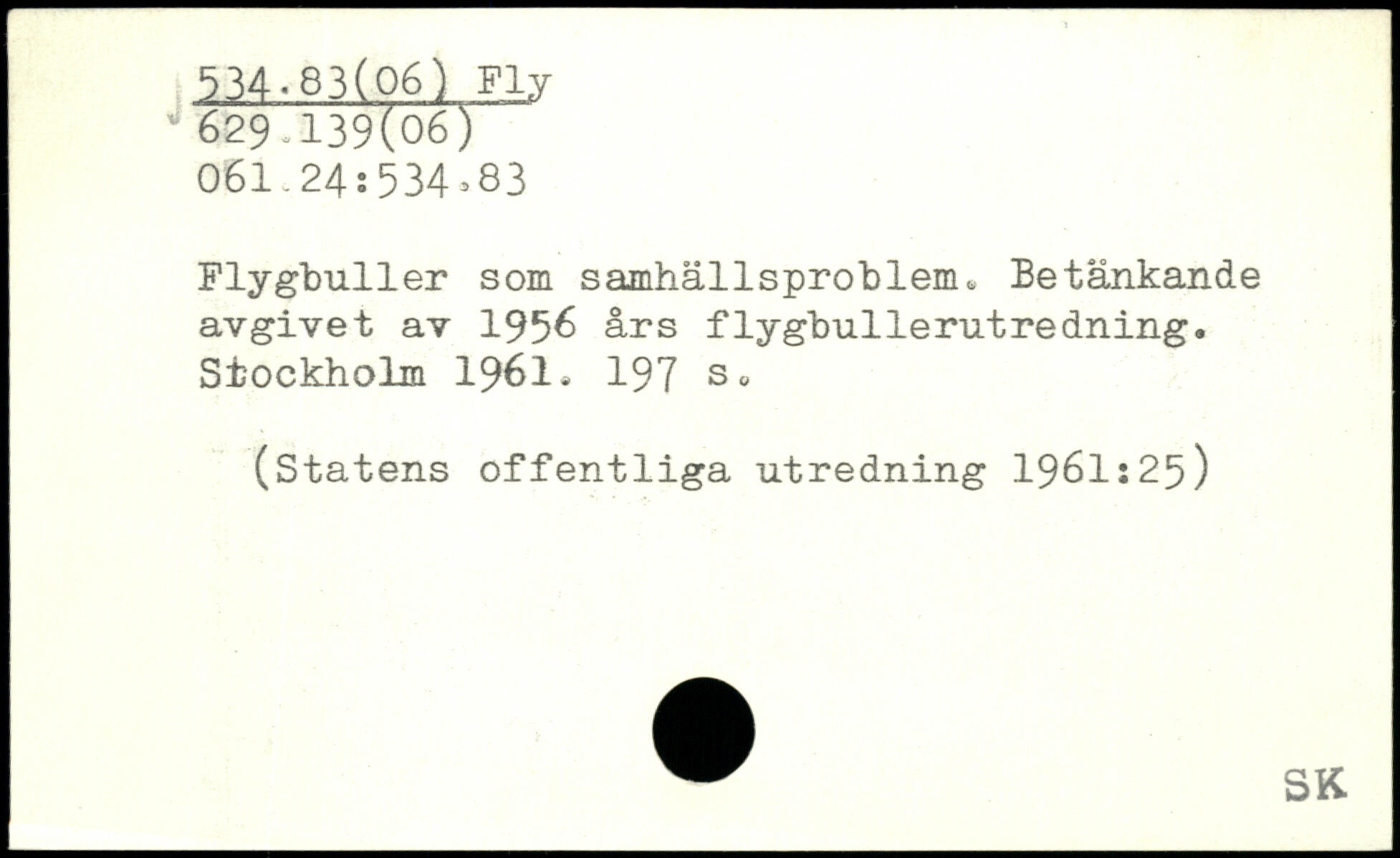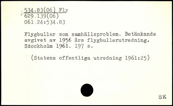 Flygbuller som samhällsproblem, Betänkande avgivet av 1956 års flygbullerutredning.