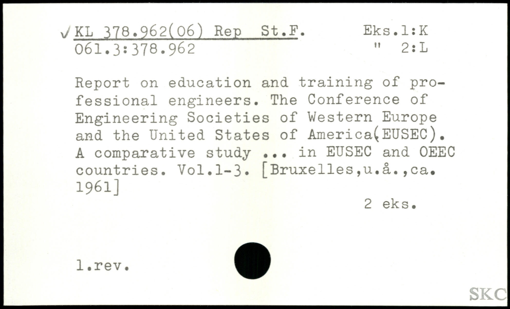 Report on education and training of professional engineers. The Conference of Engineering Societies of Western Europe and the United States of America(EUSEC). A comparative study ... in EUSEC and OEEC countries.