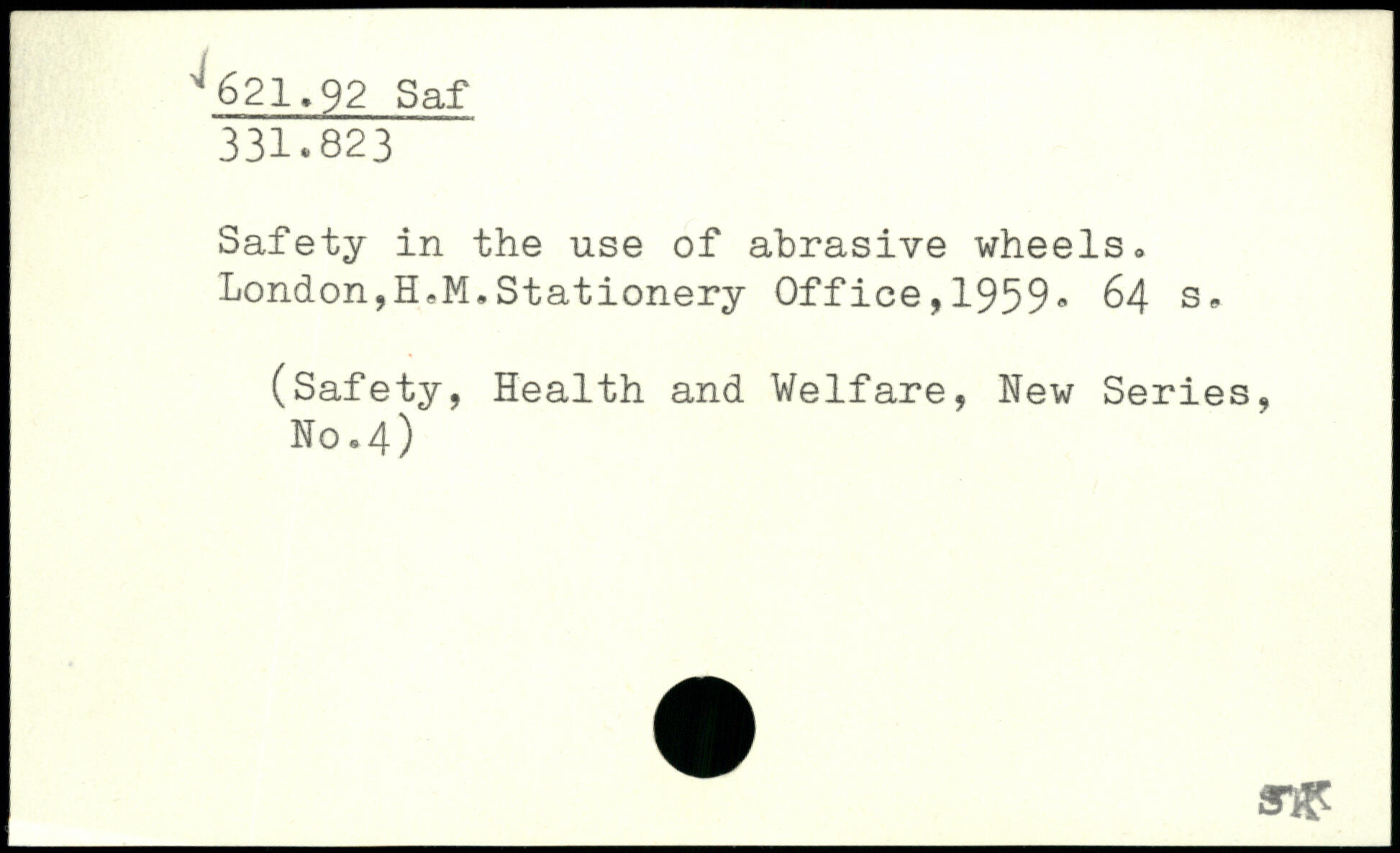 Safety in the use of abrasive wheels. London,H,M.Stationery Office,1959