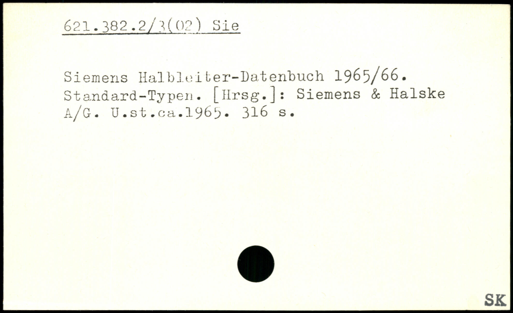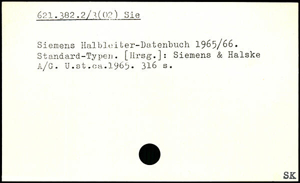 Siemens Halbleiter-Datenbuch 1965/66. Standard-Typen. [Hrsg.]: Siemens & Halske ä/G. U.st.ca.1969.