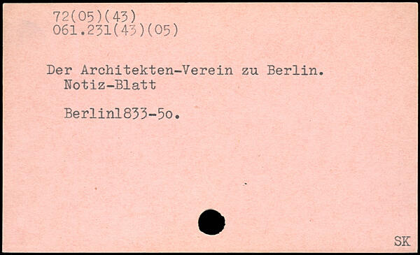 Der Architekten-Verein zu Berlin. Notiz-Blatt Berlin1833-5o.