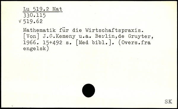 Mathematik für die Virtschaftspraxis. [Von] J.G.Kemeny u.a. Berlin,de Gruyter, 1966.