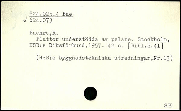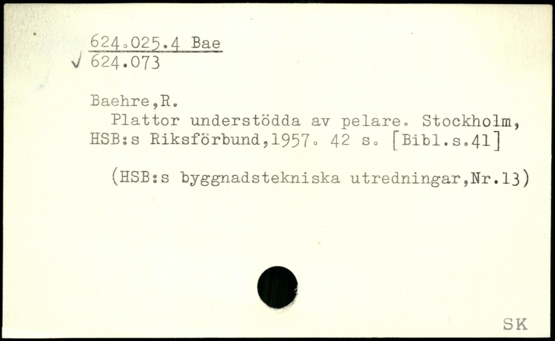 Plattor understödda av pelare. Stockholm, HSB:s Riksförbund,1957