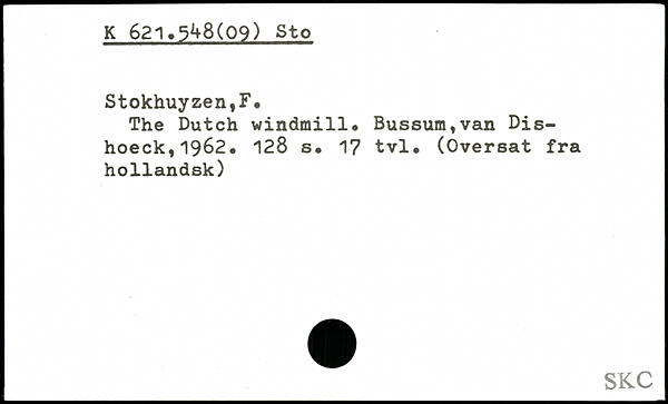 The Dutch windmill. Bussum,van Dis-hoeck,1962.