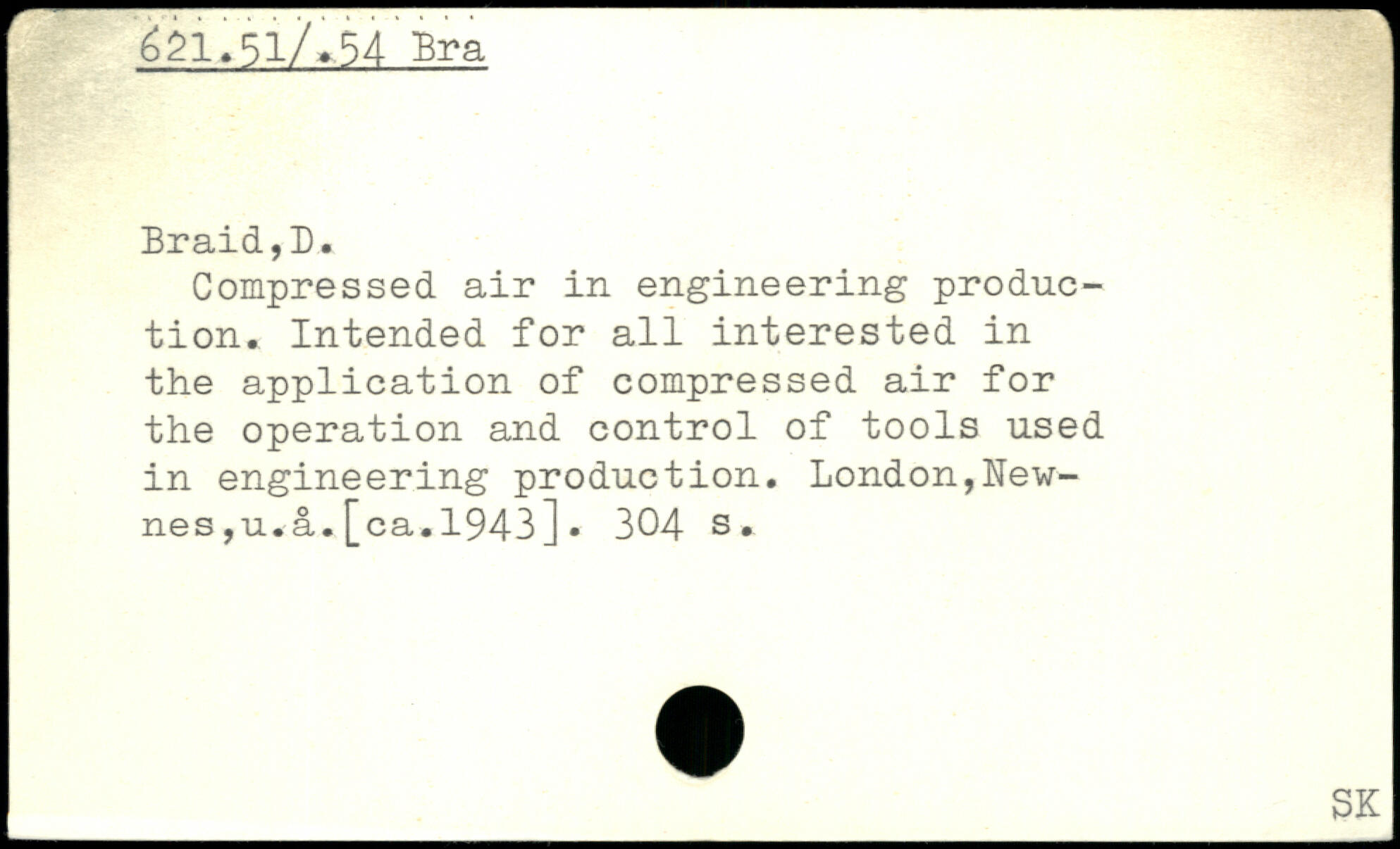 Compressed air in engineering production. Intended for all interested in the application of compressed air for the operation and control of tools used in engineering production. London,New-nes,u.a.[ca. 1943].