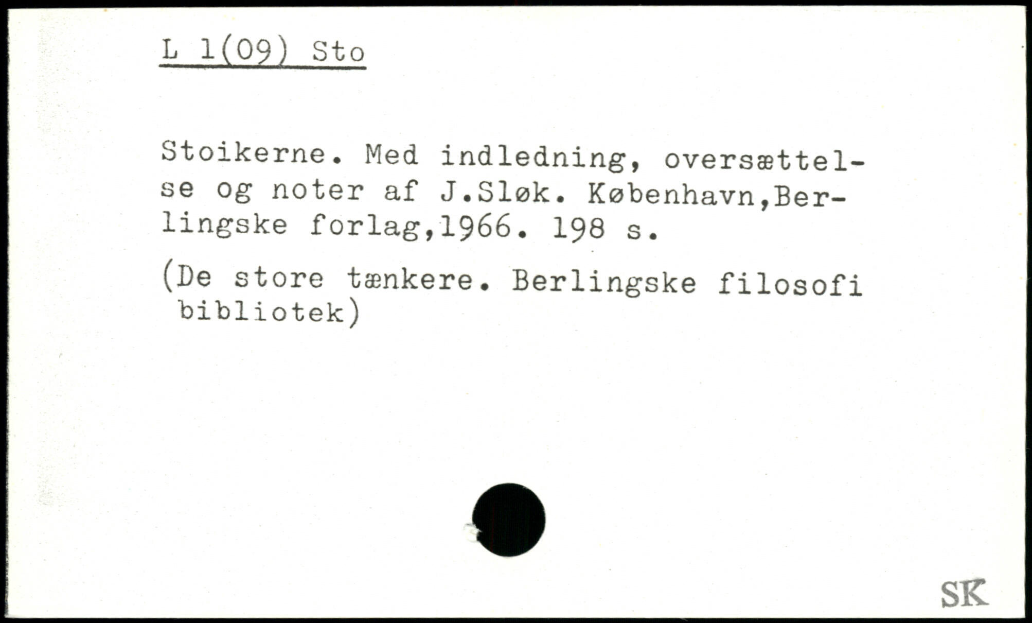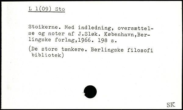 Stoikerne. Med indledning, oversættelse og noter af J.Sløk.