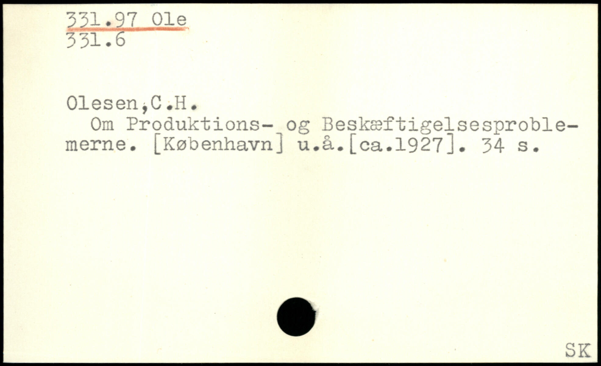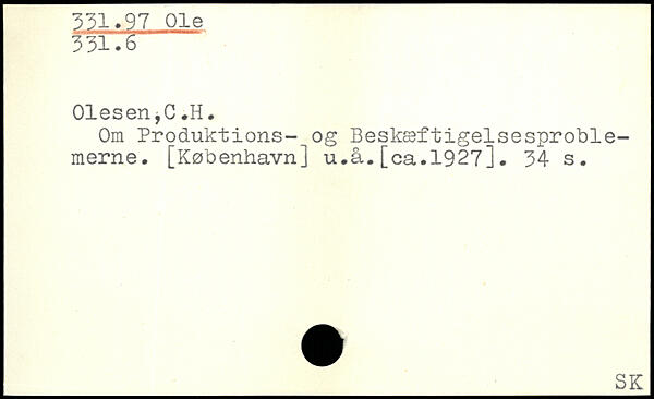 Om Produktions- og Beskæftigelsesproblemerne. [København] u.å.[ca.1927].