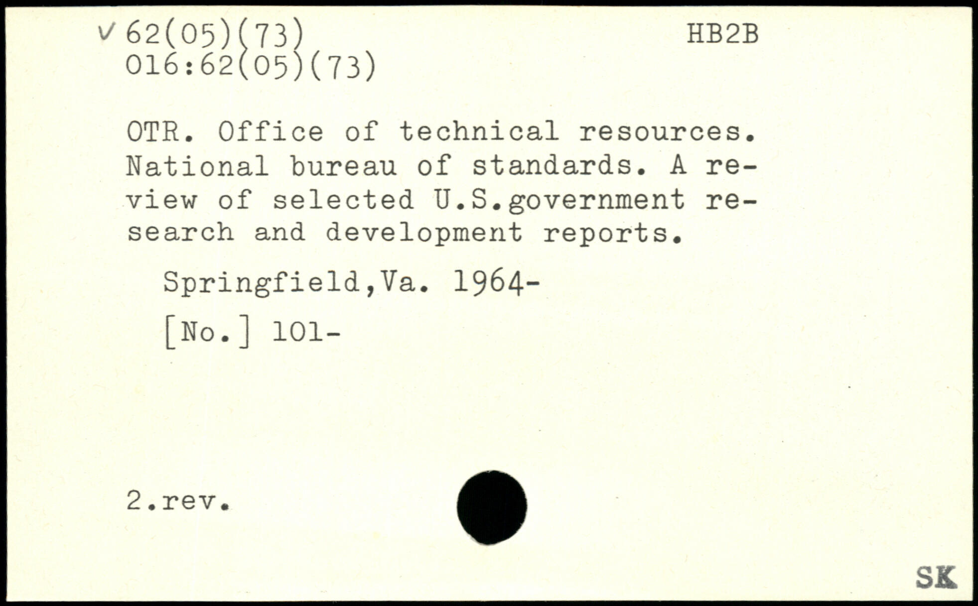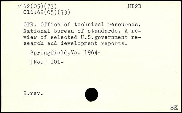 OTR. Office of technical resources. National bureau of standards. A review of selected U.S.government research and development reports. Springfield,Va. 1964— [No.] 101-