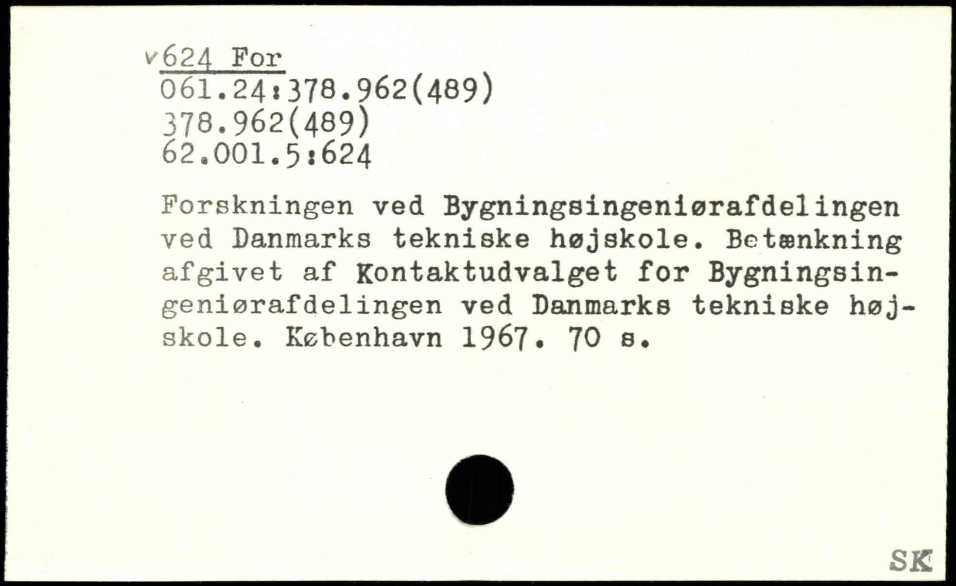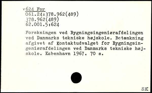 Forskningen ved Bygningsingeniørafdelingen ved Danmarks tekniske højskole. Betænkning afgivet af Kontaktudvalget for Bygningsin-geniøraf delingen ved Danmarks tekniske højskole.