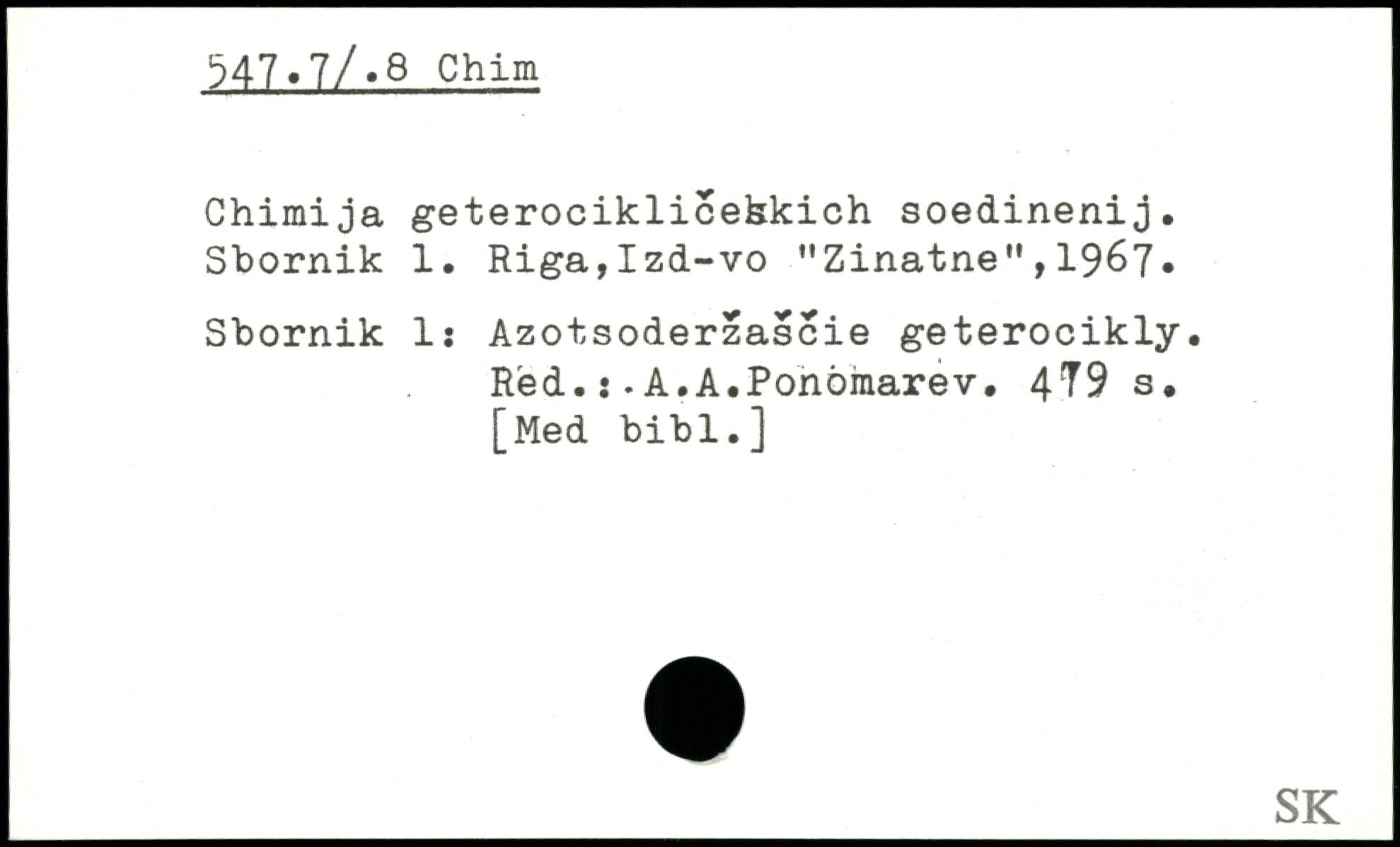 Chimija geterociklicekkich soedinenij. Sbornik 1. Riga,Izd-vo "Zinatne",1967. Sbornik li Azotsoderzascie geterocikly. Red.î.A.A.Ponomarev. 4T