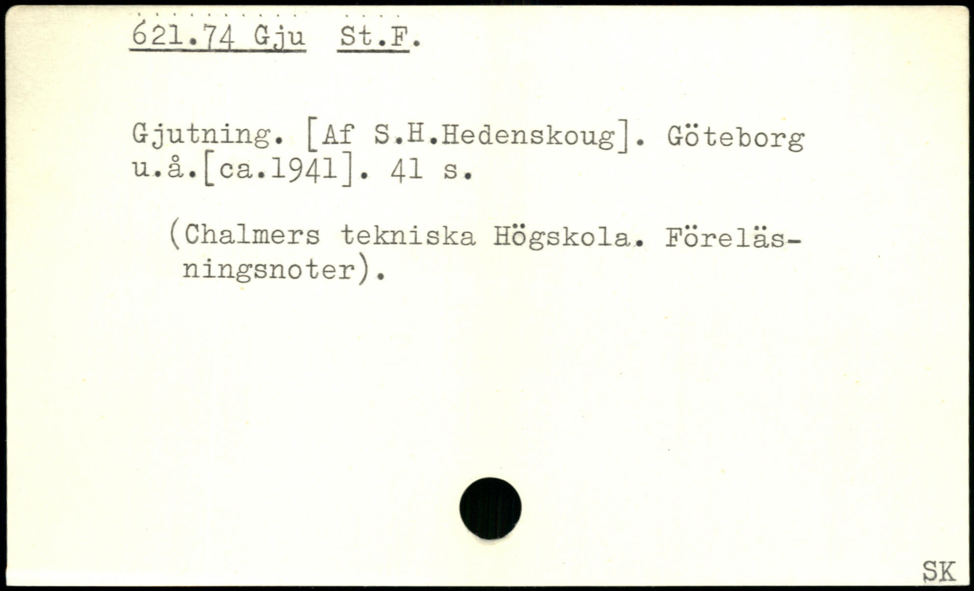 Gjutning. [Af S.H.Hedenskoug]. Göteborg u.å.[ca.1941].