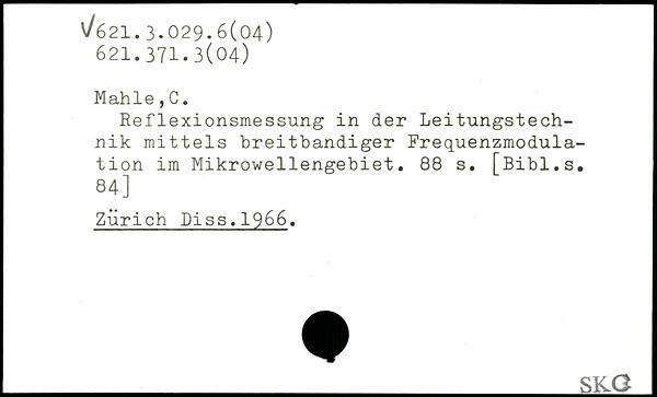 Reflexionsmessung in der Leitungstechnik mittels breitbandiger Frequenzmodulation im Mikrowellengebiet.