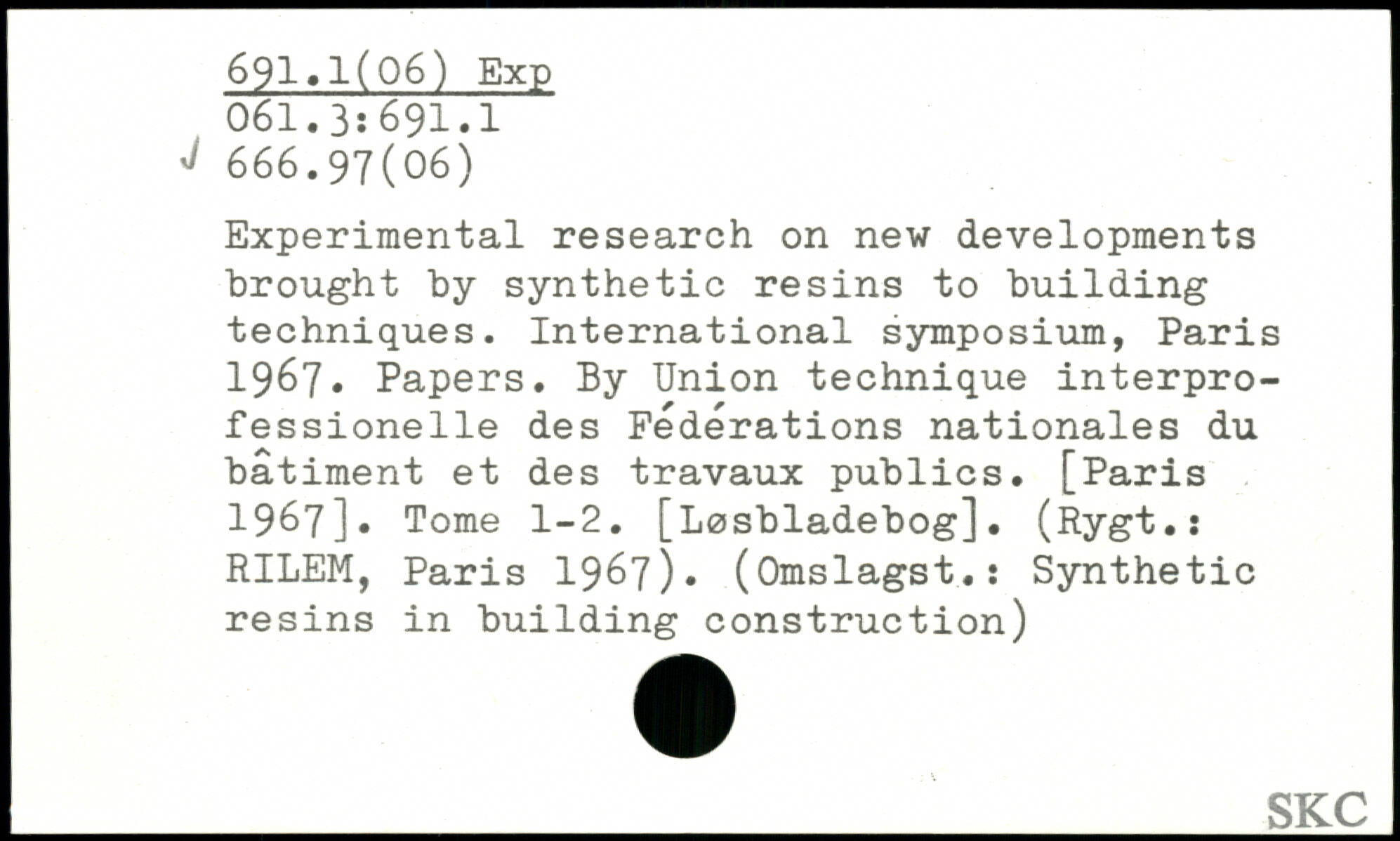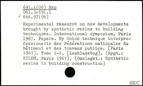 Experimental research on new developments brought by synthetic resins to building techniques. International symposium