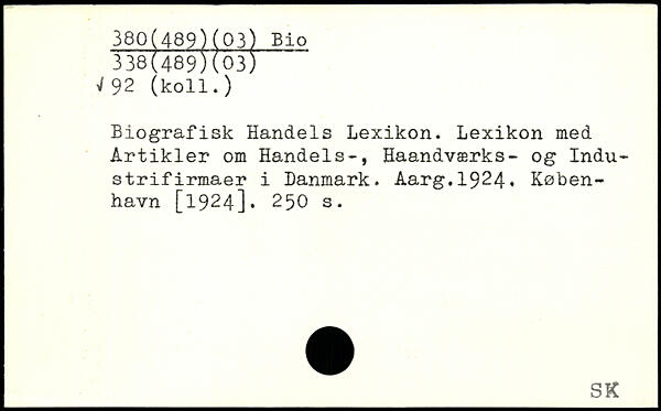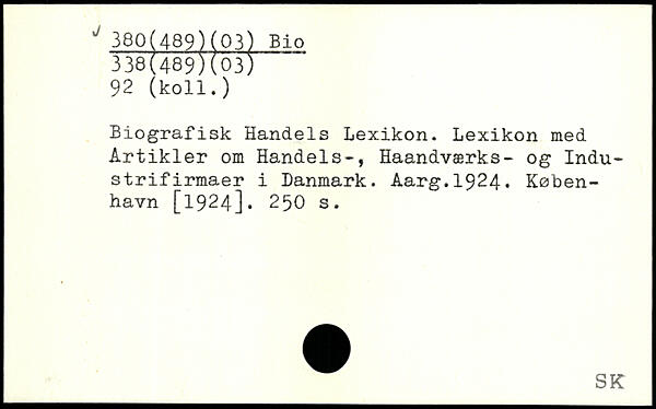 Biografisk Handels Lexikon. Lexikon med Artikler om Handels-, Haandværks- og Industrifirmaer i Danmark. Aarg.1924.