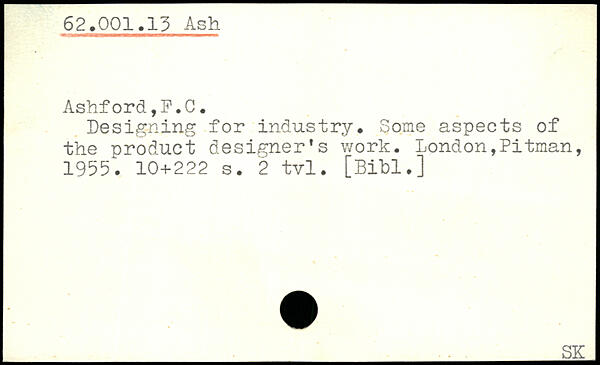 Designing for industry. Some aspects of the nroduct designer's work.