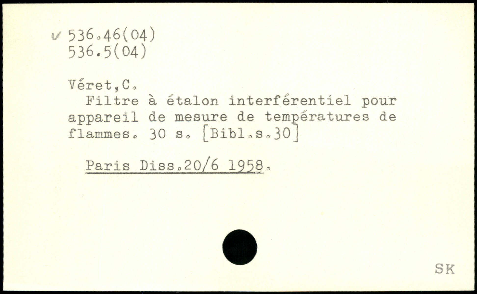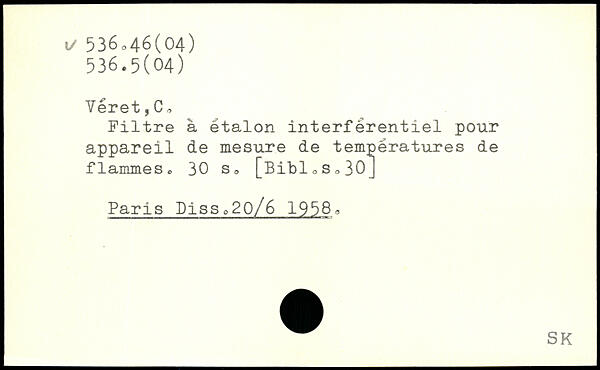 Vêret,C , Filtre à étalon interférentiel pour appareil de mesure de températures de flammes