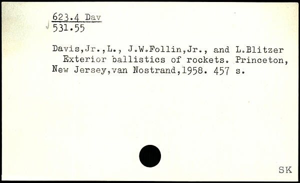 Davis,Jr.,L., J.WoFollin,Jr., and L.Blitzer Exterior Ballistics of rockets. Princeton, New Jersey,van Nostrand,1958.