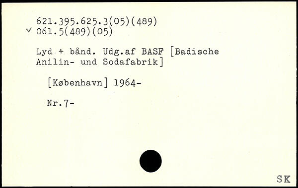 Lyd + bånd. Udg.af BASF [Badische Anilin- und Sodafabrik]