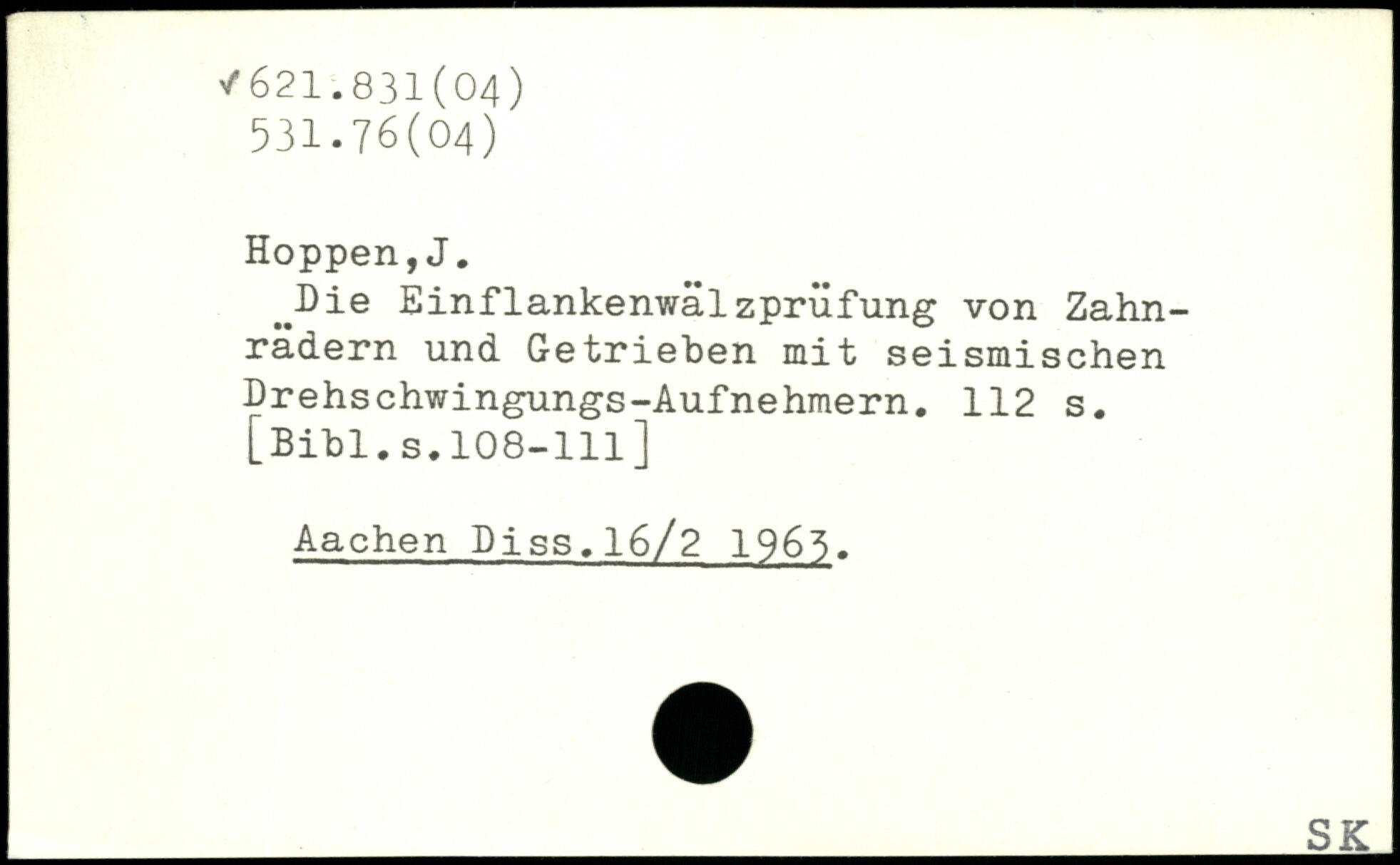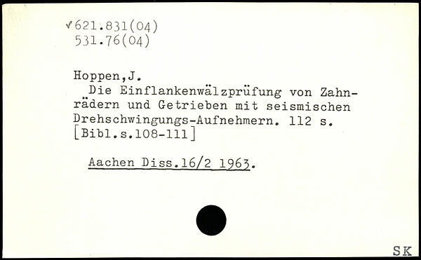 J)ie Einflankenwälzprüfung von Zahnrädern und Getrieben mit seismischen Drehschwingungs-Aufnehmern.