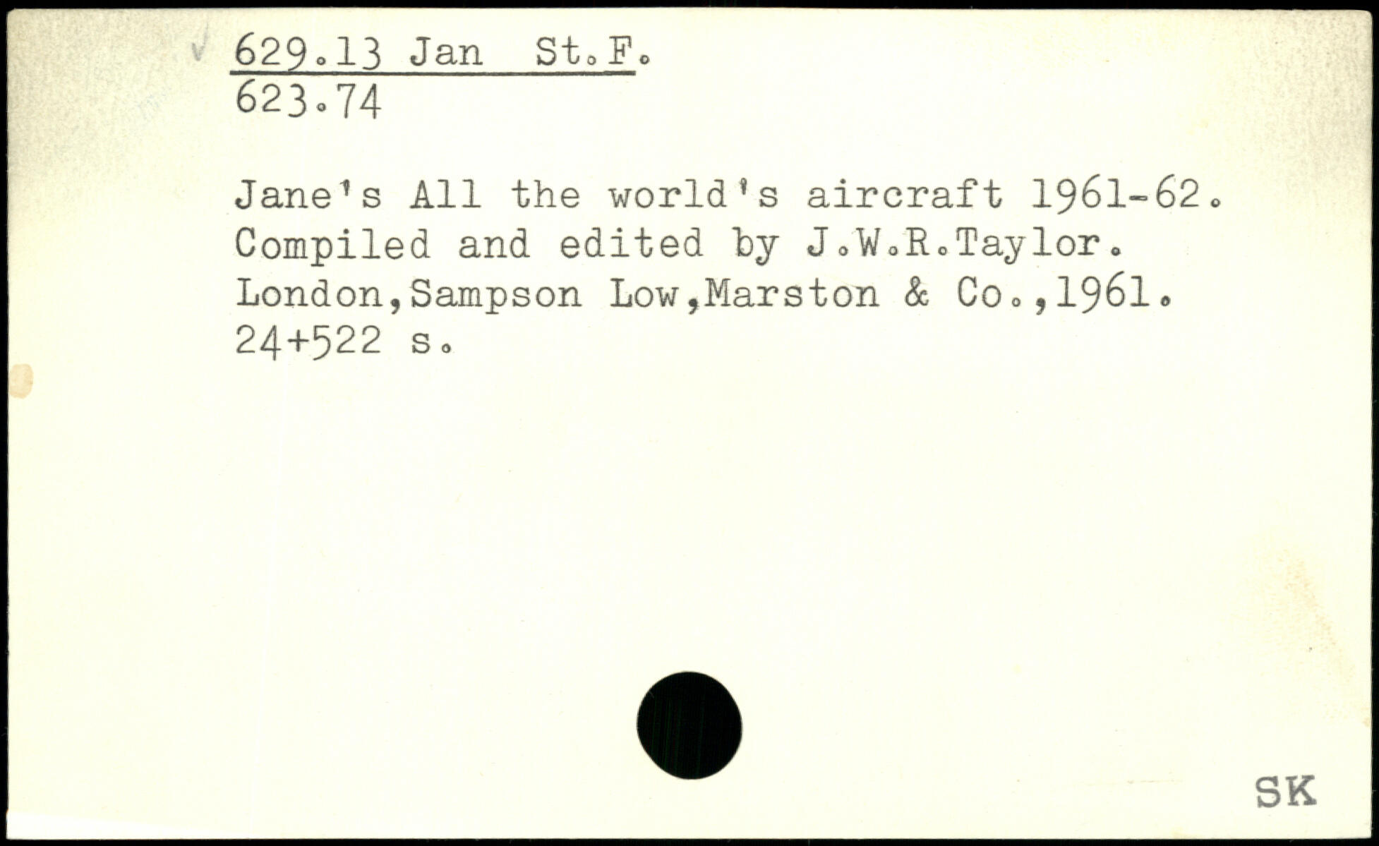 Jane1s All the world’s aircraft 1961-62. Compiled and edited hy J,W.