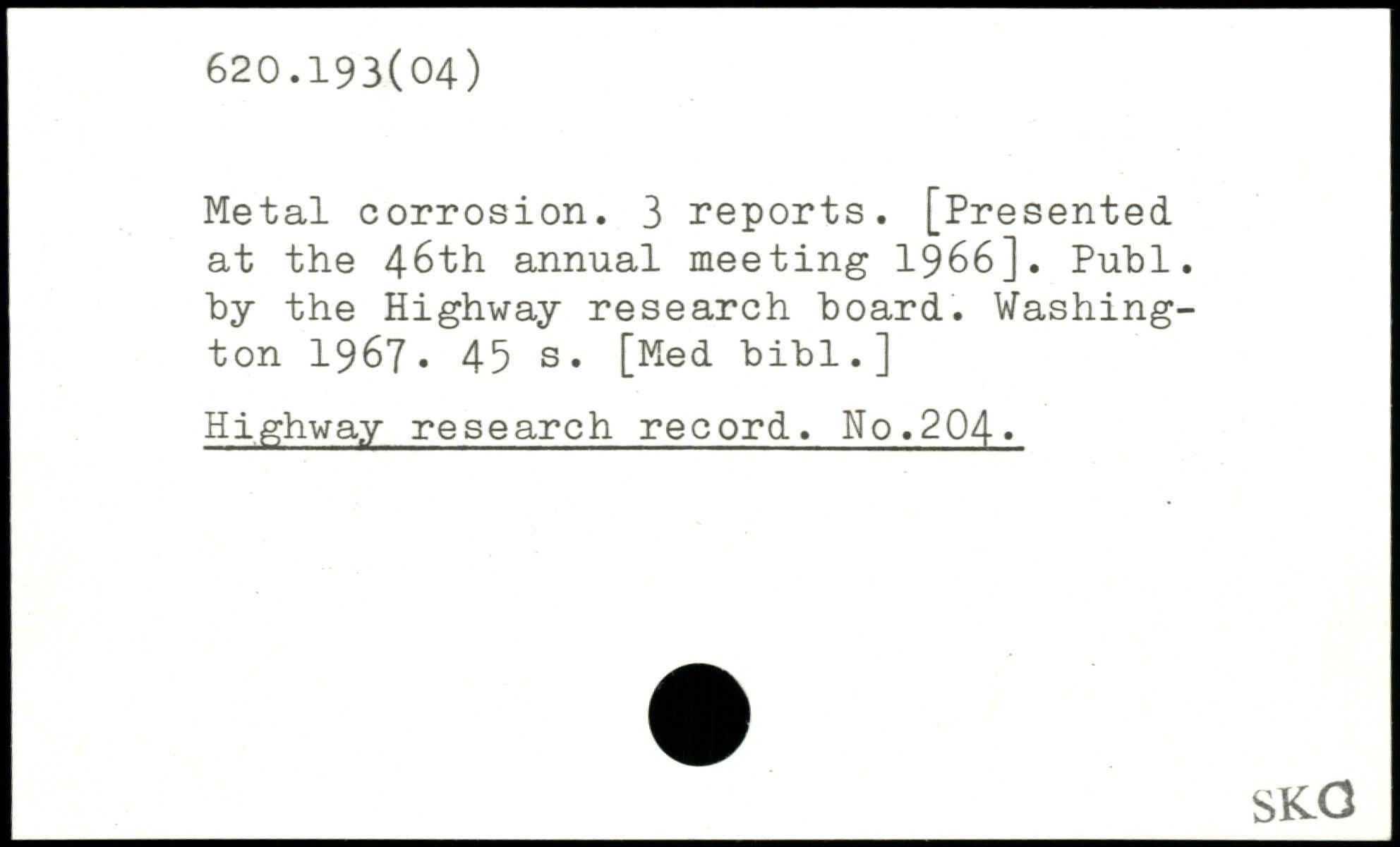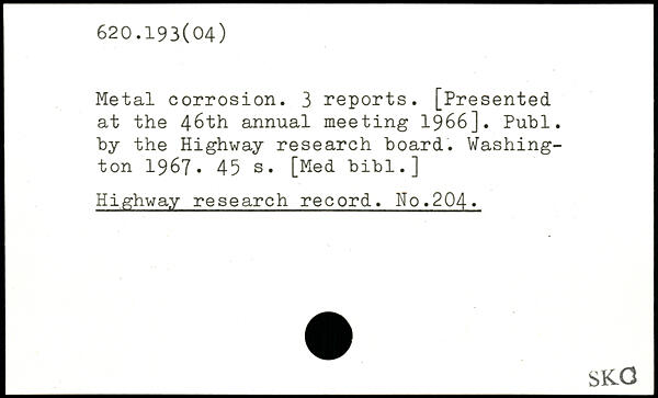 Metal corrosion. 3 reports. [Presented at the 46th annual meeting 1966].