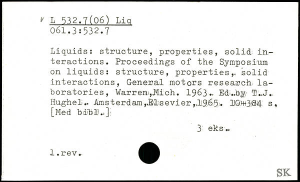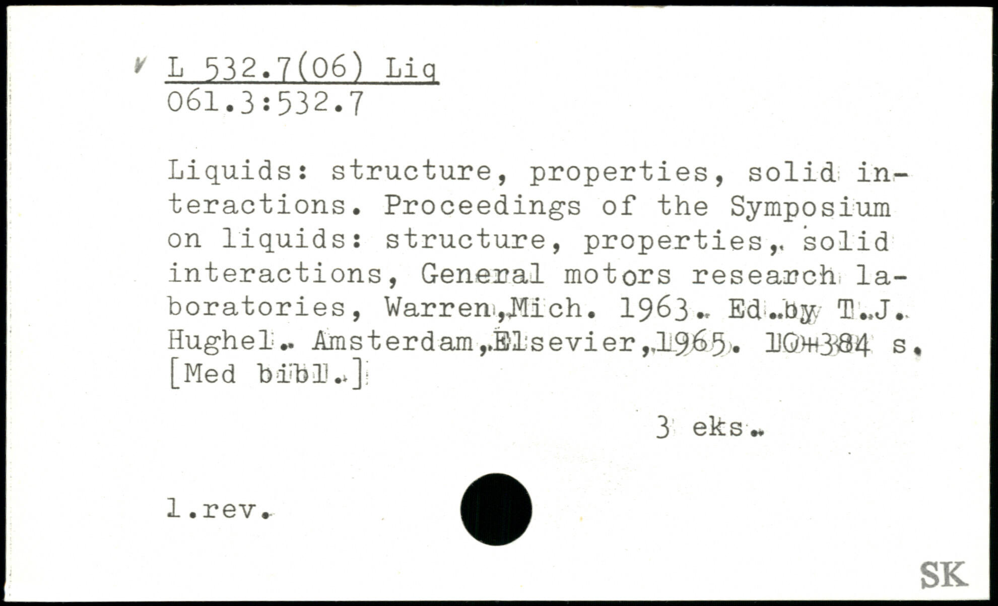 Liquids: structure, properties, solid interactions. Proceedings of the Symposium on liquids: structure, properties,, solid interactions, General motors research; laboratories, Warren.?JMich. 1963- Ed ..oy T..J. HugheAmsterdam,.Elsevier ,,1565,10^3^