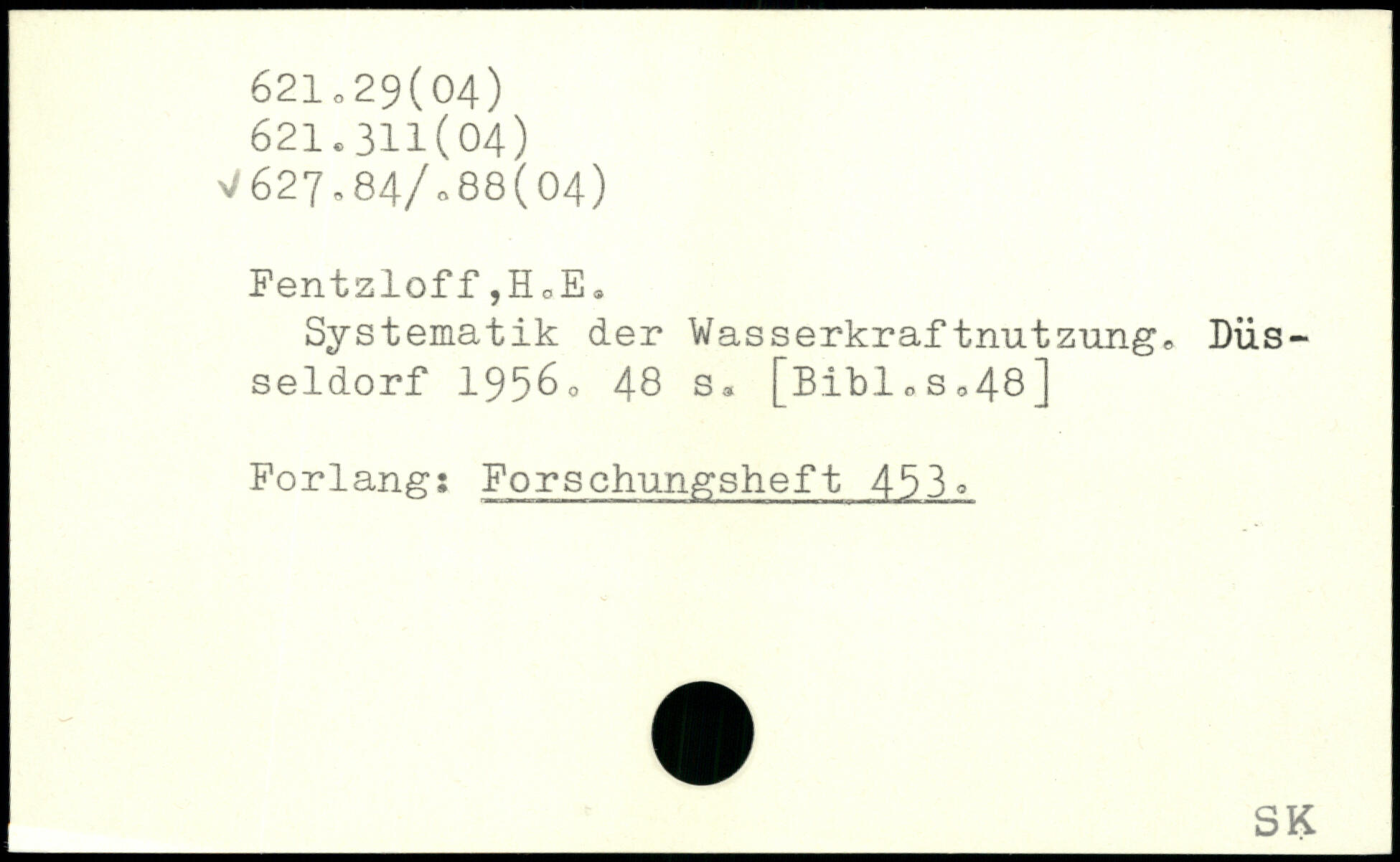 Systematik der Wasserkraftnutzung, Düsseldorf 19560