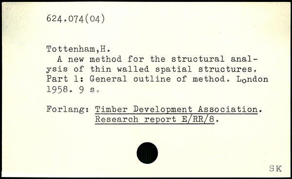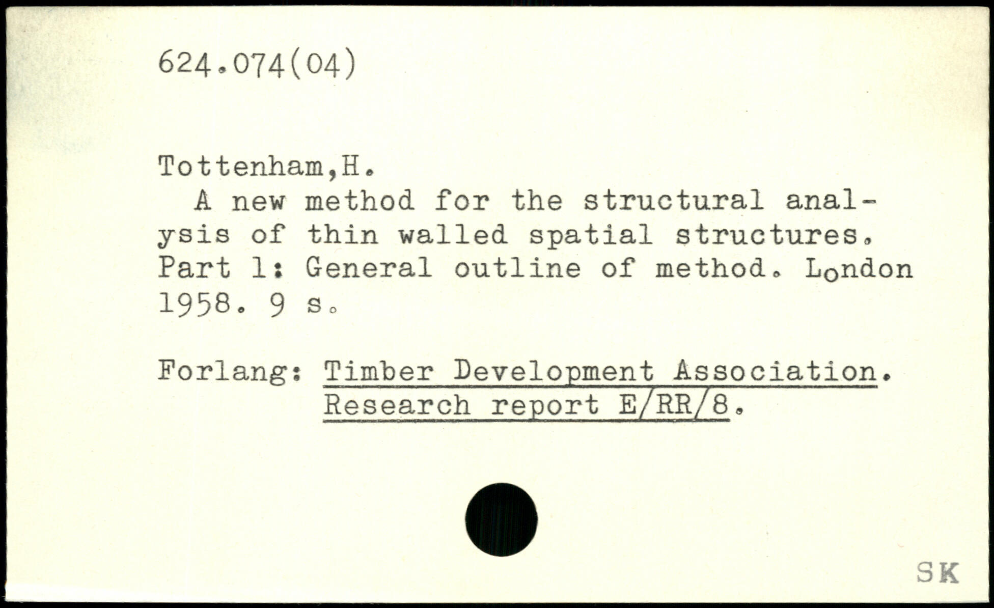 A new method for the structural analysis of thin walled spatial structures. Part 1; General outline of method. L0ndon 1958.