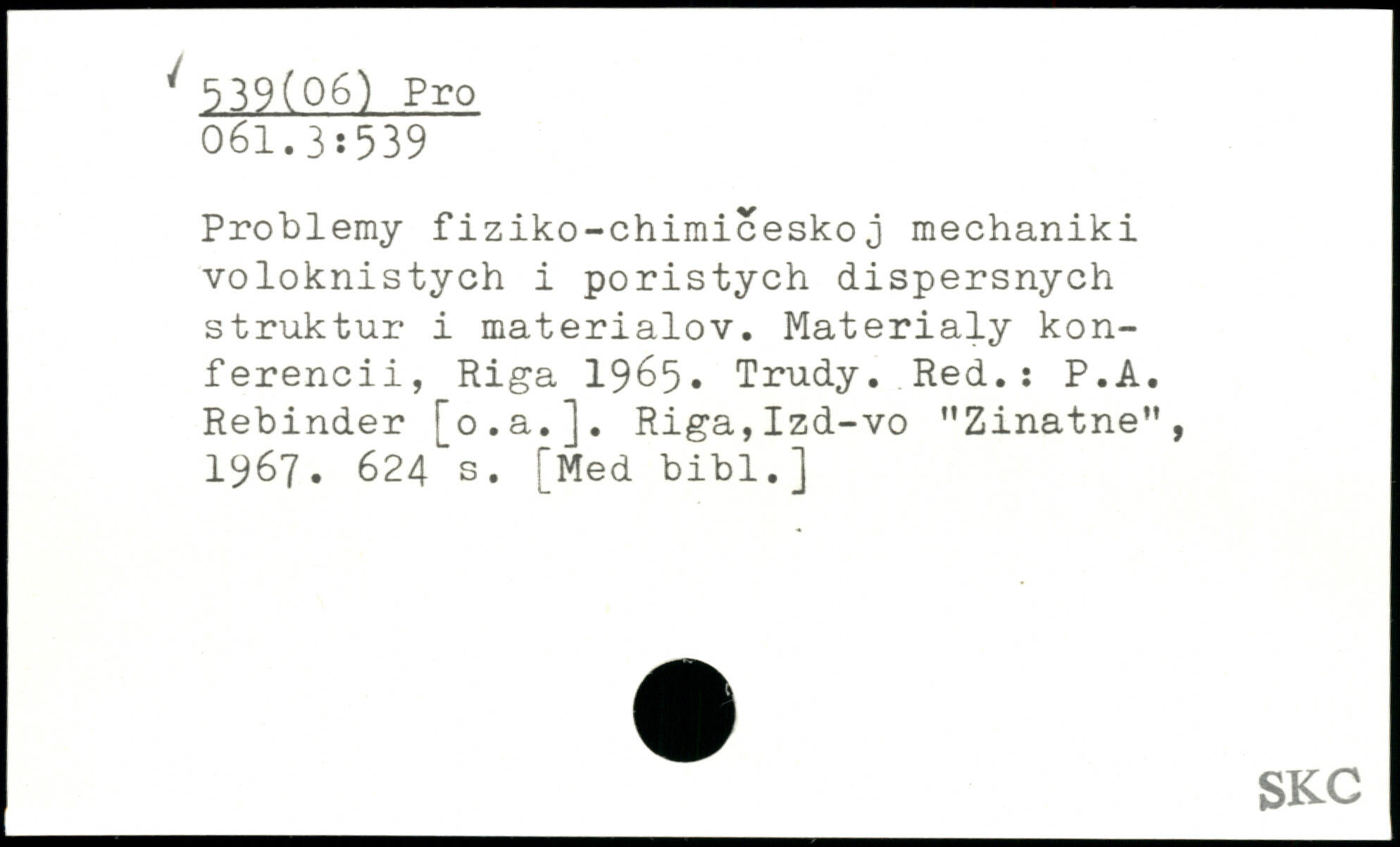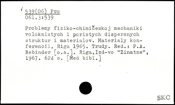 Problemy fiziko-chimiceskoj mechaniki voloknistych i poristych dispersnych struktur i materialov. Materialy kon-ferencii, Riga 1965. Trudy. Red.: P.A. Rebinder [o.a.]. Riga,Izd-vo "Zinatne", 1967.