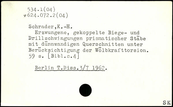 Erzwungene, gekoppelte Biege- und Drillschwingungen prismatischer Stäbe mit dünnwandigen Querschnitten unter Berücksichtigung der WÖlbkrafttorsion.