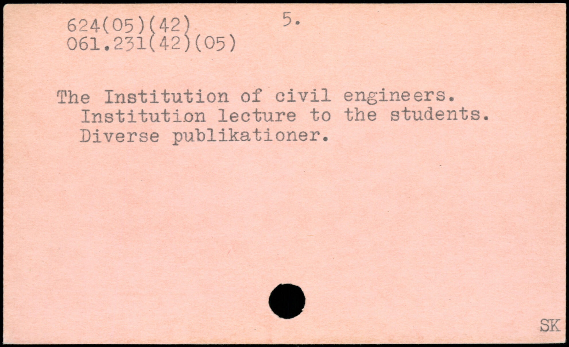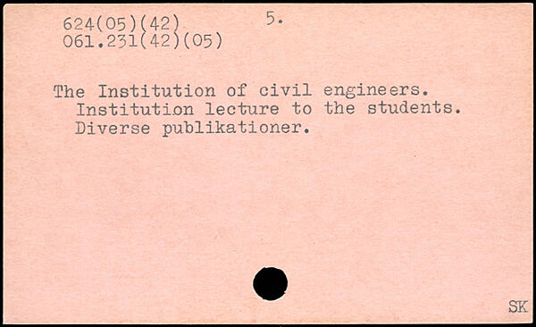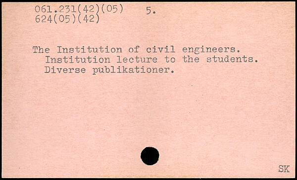 The Institution of civil engineers. Institution lecture to the students. Diverse publikationer.