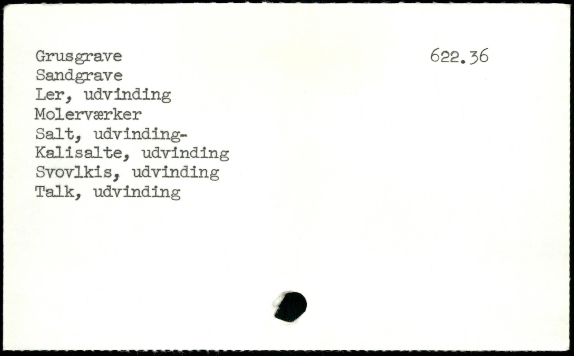 Sandgrave Ler, udvinding Molerværker Salt, udvinding- Kalisalte, udvinding Svovlkis, udvinding Talk, udvinding