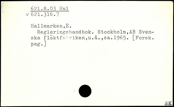 Regleringshandbok. Stockholm,AB Svenska flaktfe 1 riken,u.å.,ca.1965.