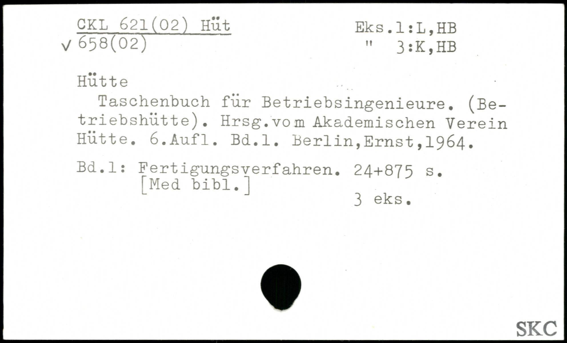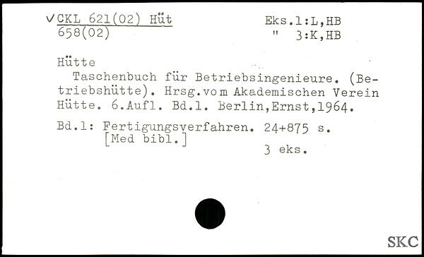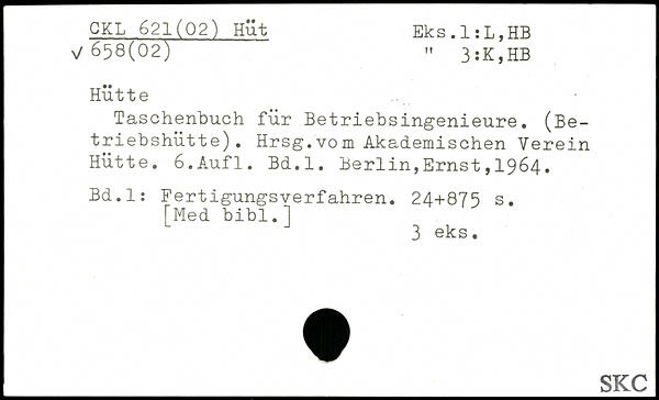 Taschenbuch für Betriebsingenieure. (Betriebshütte). Hrsg.vom Akademischen Verein Hütte.