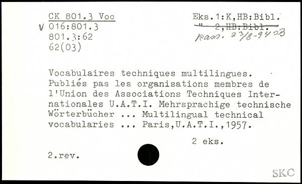 UDK: 801.3 Voc, 016:801.3, 801.3:62, 62(03)