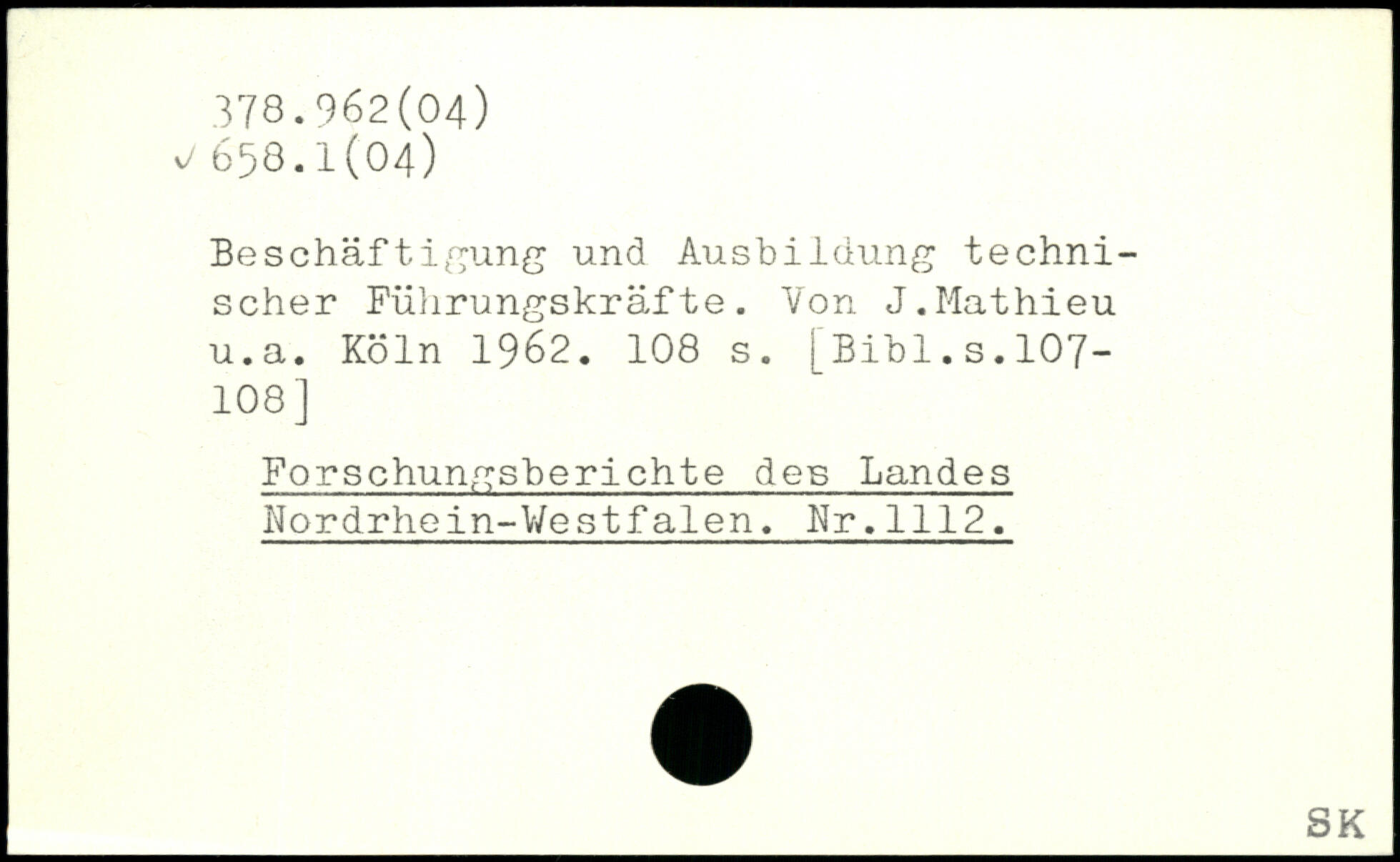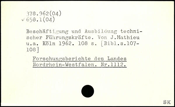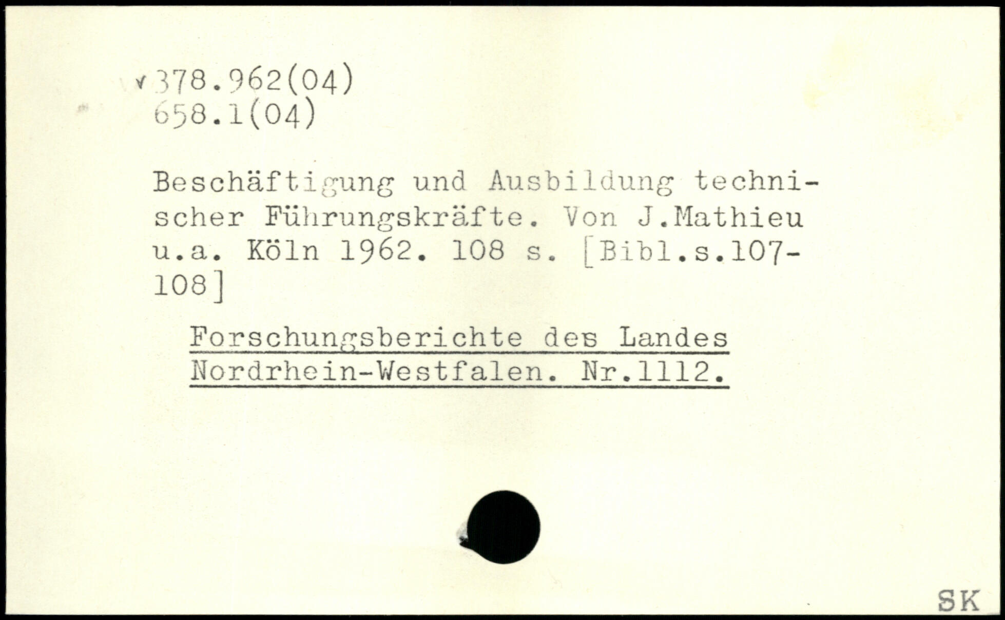 Beschäftigung und Ausbildung technischer Führungskräfte. Von J.Mathieu u.a.