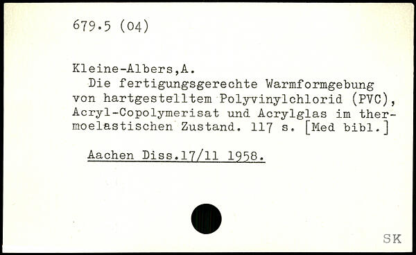 Die fertigungsgerechte Warmformgebung von hartgestelltem'Polyvinylchlorid (PVC), Acryl-Copolymerisat und Acrylglas im thermoelastischen Zustand.