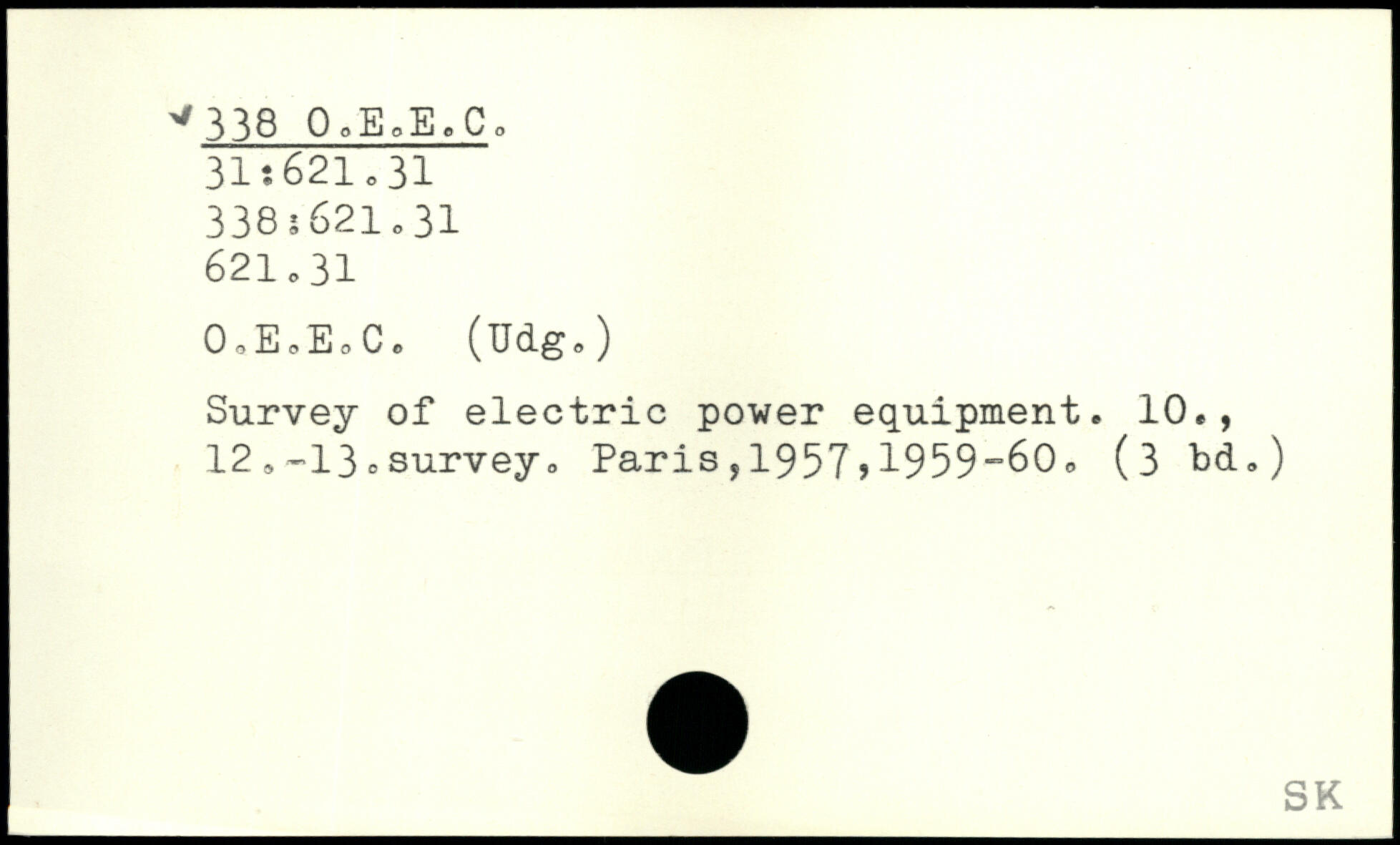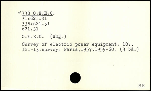 Survey of electric power equipment. 10., 12,-13osurvey. Paris,1957>1959-600 (3 bd,)