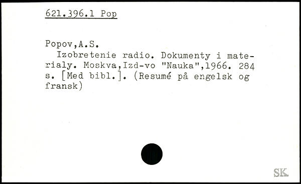 Izobretenie radio. Dokumenty i mate-rialy. Moskva,Izd-vo "Nauka",1966.