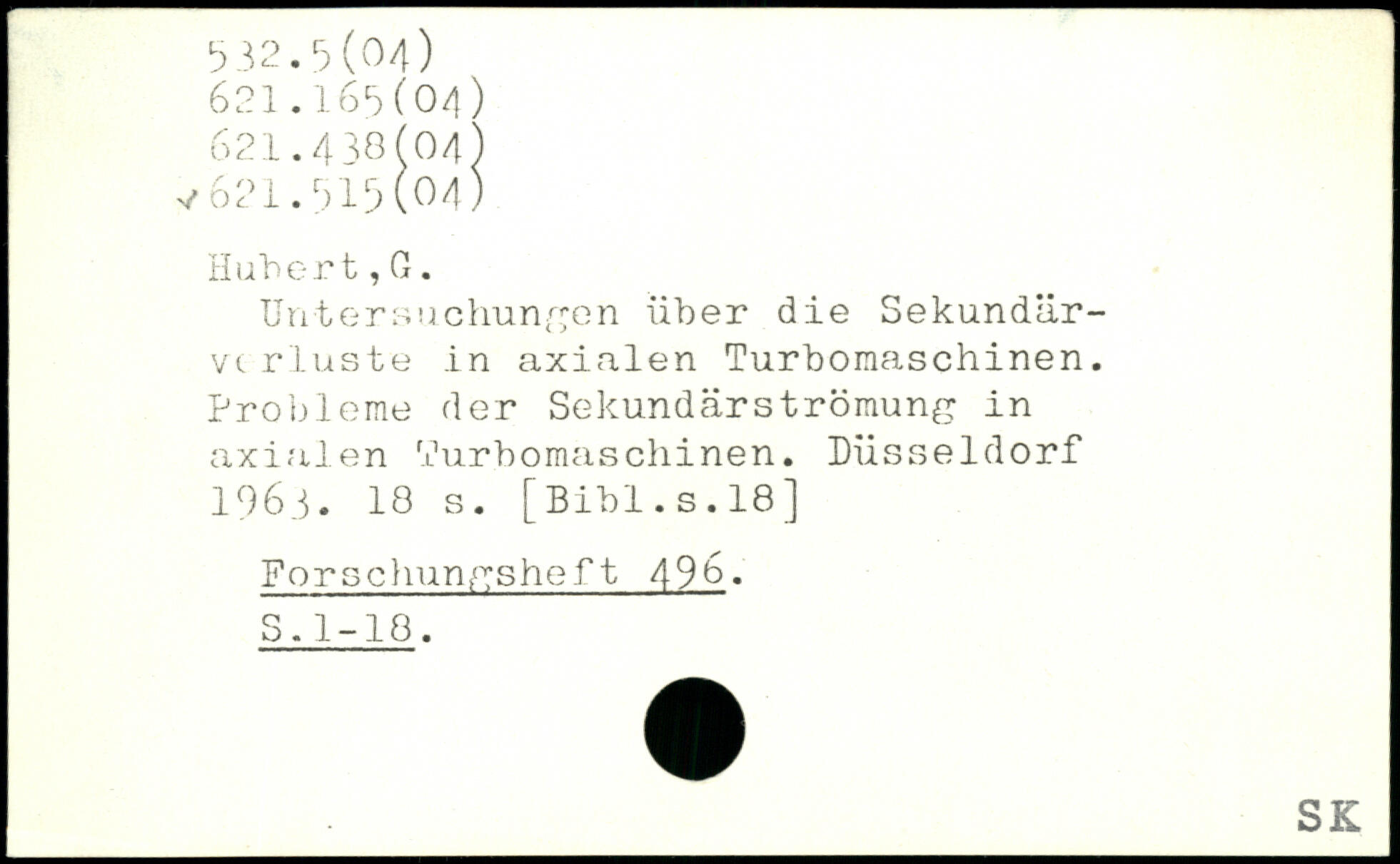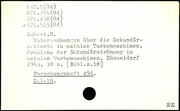 Untersuchungen über die Sekundär-vc rluste in axialen Turboraaschinen. Probleme der Sekundärströmung in axialen Vurbomaschinen. Düsseldorf 196,3.