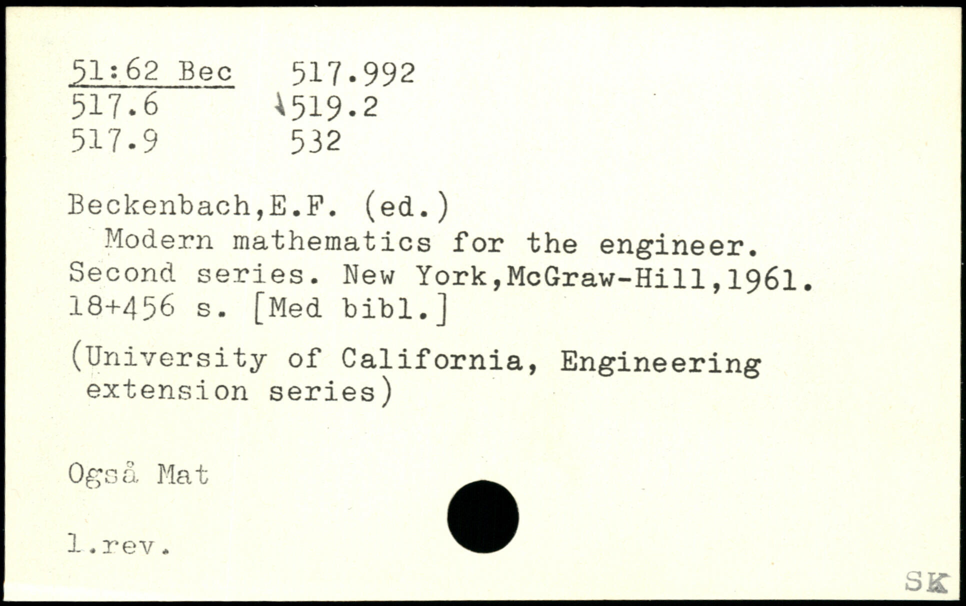 Modern mathematics for the engineer. Second series.