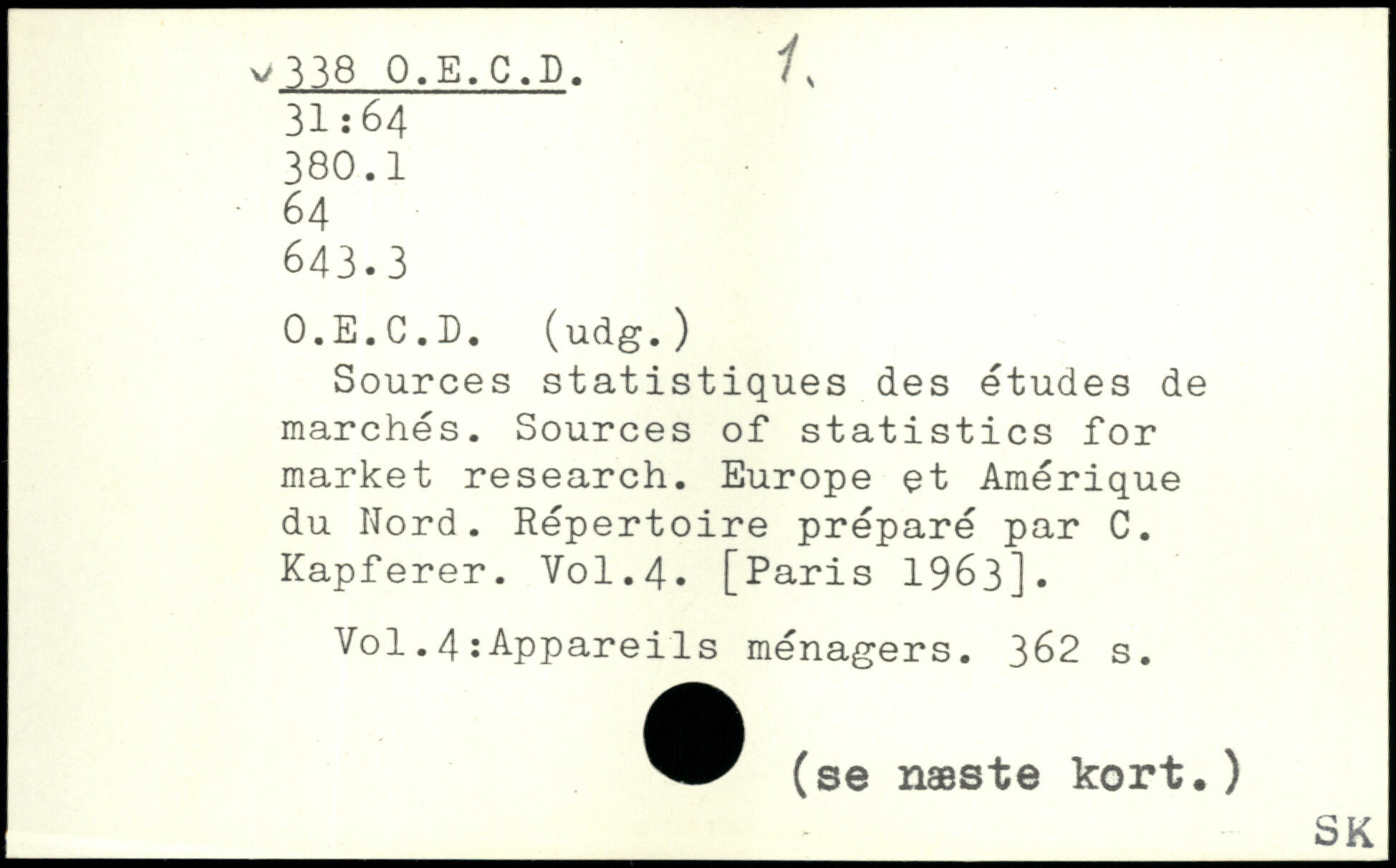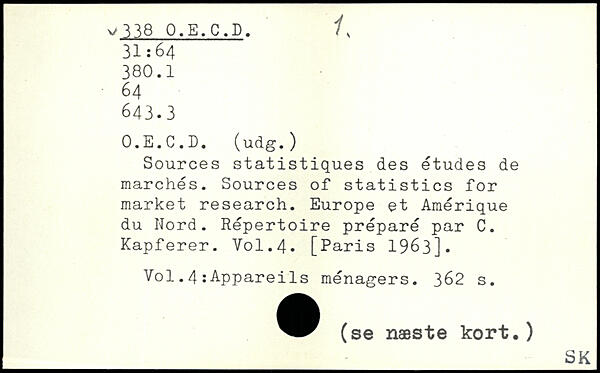 Sources statistiques des études de marchés. Sources of statistics for market research. Europe et Amérique du Nord. Répertoire préparé par C. Kapferer.