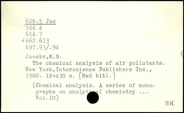 The chemical analysis of air pollutants, New York,Interscience Publishers Inc,, 1960