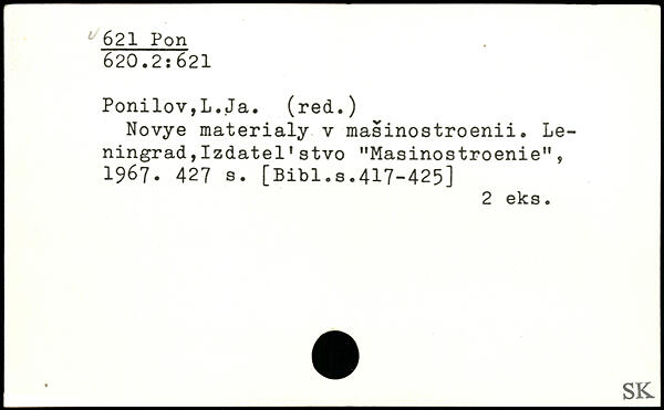 PoniloVjL.Ja. (red.) Novye materialy v masinostroenii. Leningrad ,Izdatel1stvo "Masinostroenie", 1967.