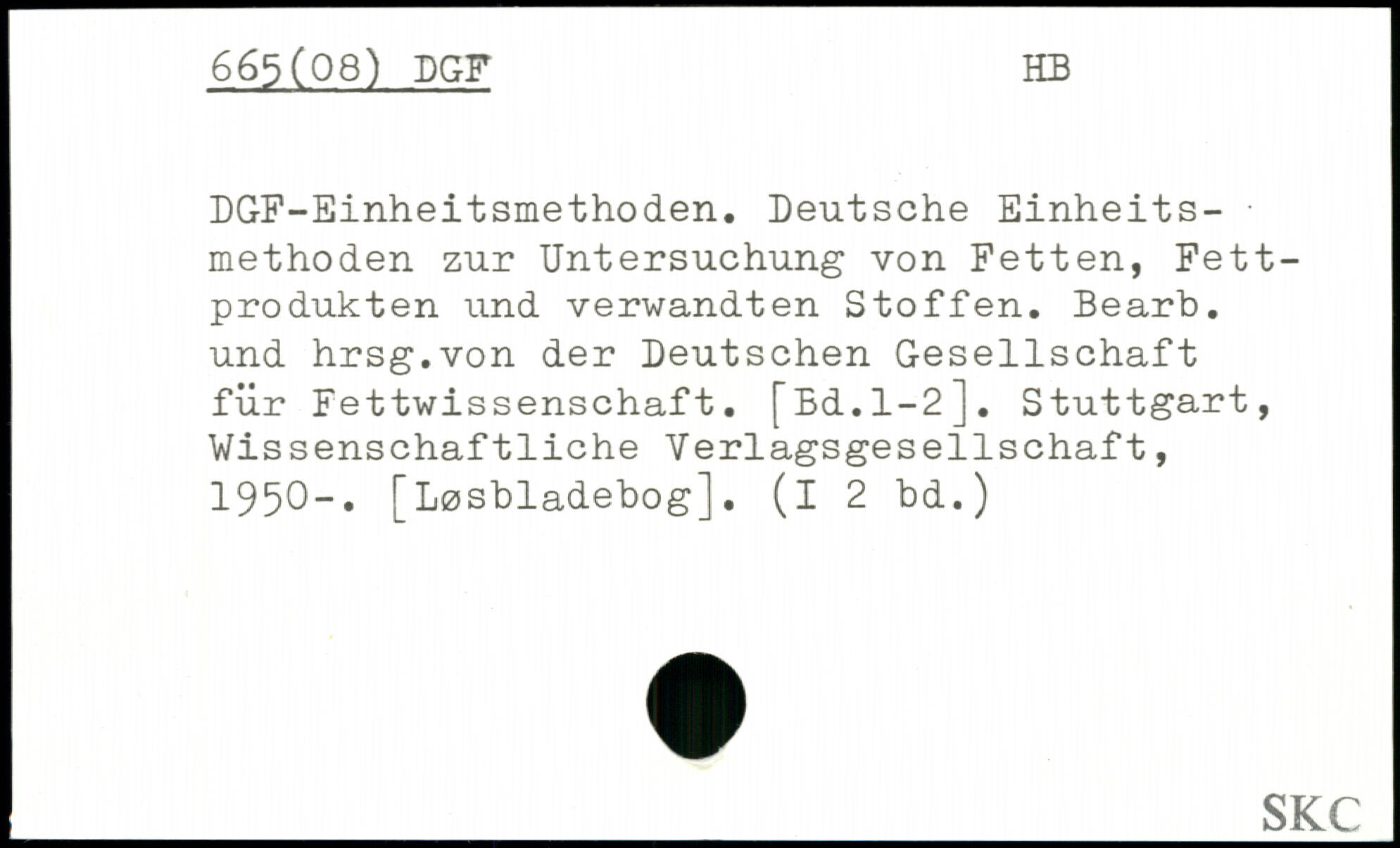 DGF-Einheitsmethoden. Deutsche Einheitsmethoden zur Untersuchung von Fetten, Fettprodukten und verwandten Stoffen. Bearb. und hrsg.von der Deutschen Gesellschaft für Fettwissenschaft. [